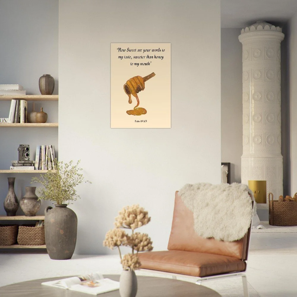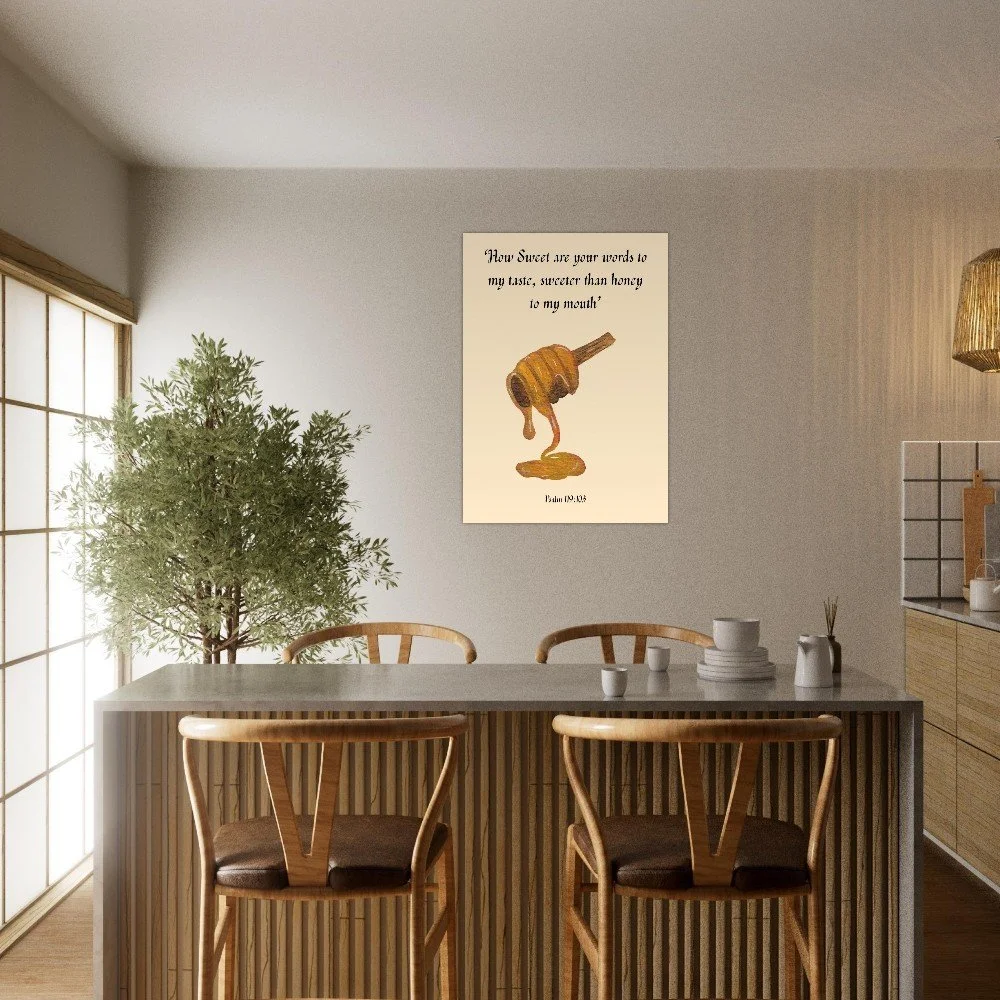 Add warmth and sweetness to your space with this fine art poster inspired by Psalm 119:103 — “How sweet are Your words to my taste, sweeter than honey to my mouth!”