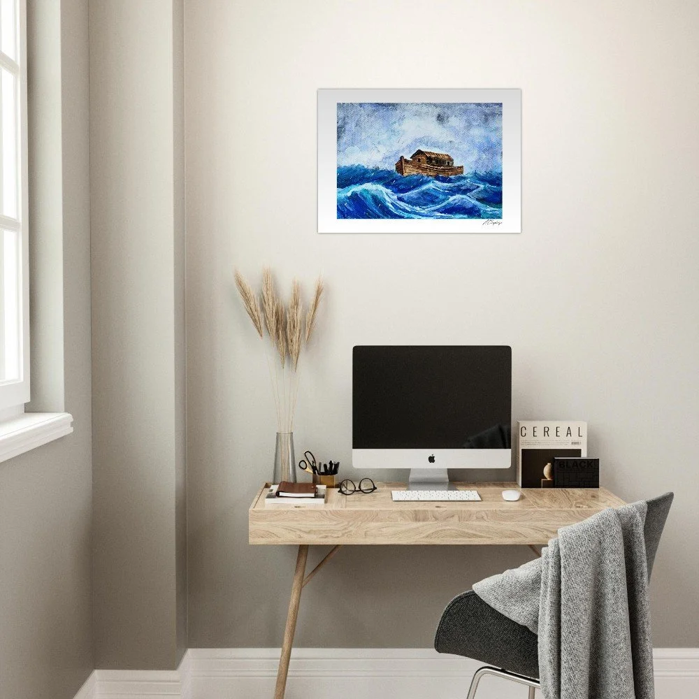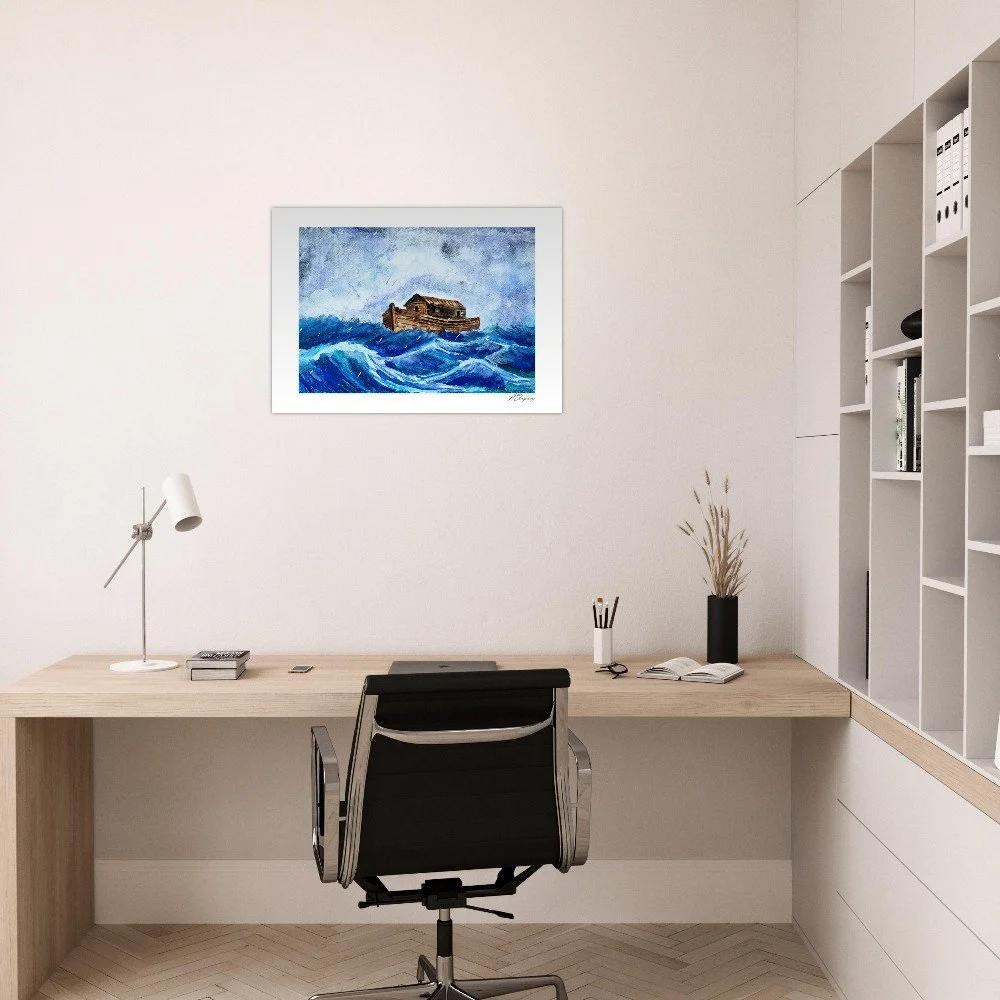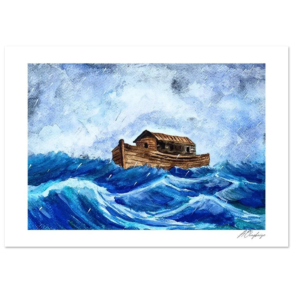 Noah's Ark Fine Art Print – Watercolour Painting in Stormy Sea